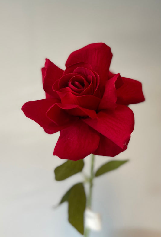 Red Velvet Rose Single Stem Artificial Flower Faux Flower