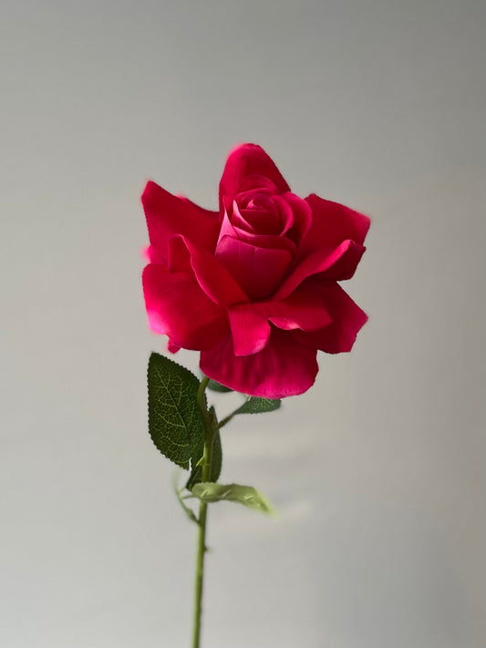 Hot Pink Velvet Rose Single Stem Artificial Flower Faux Flower