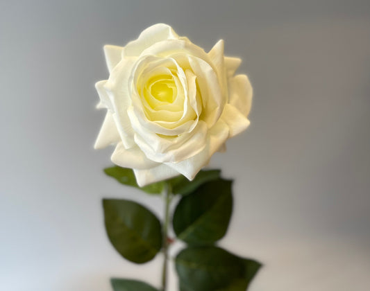 Real Touch White Hannah Rose Green center Single Stem Artificial Flower
