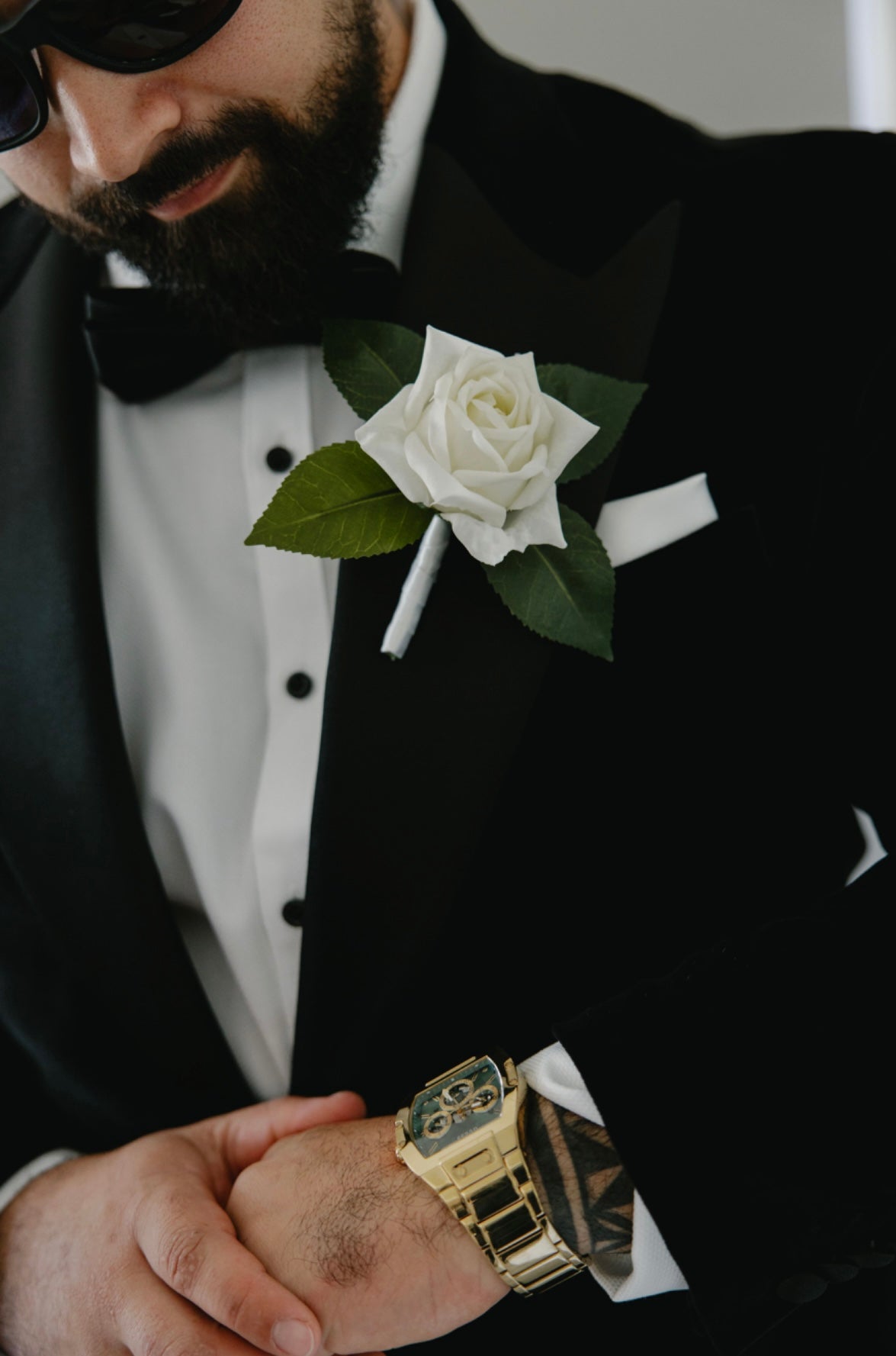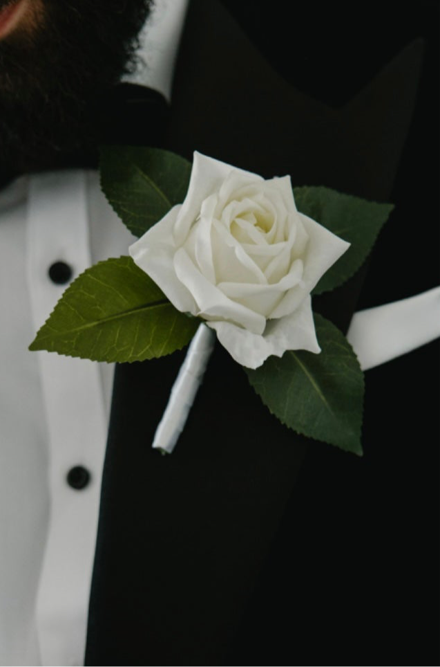 Perfect for weddings, proms, or any formal event, the Real Touch Buttonhole offers the ideal finishing touch to your attire. Its enduring beauty ensures it will remain pristine throughout the day and beyond, serving as a cherished keepsake of your memorable occasion. Whether worn by the groom, groomsmen, or guests, this stunning boutonniere effortlessly elevates any ensemble with its timeless charm and sophistication. Make a statement of refined elegance with the unparalleled beauty of the Real Touch Buttonhole.