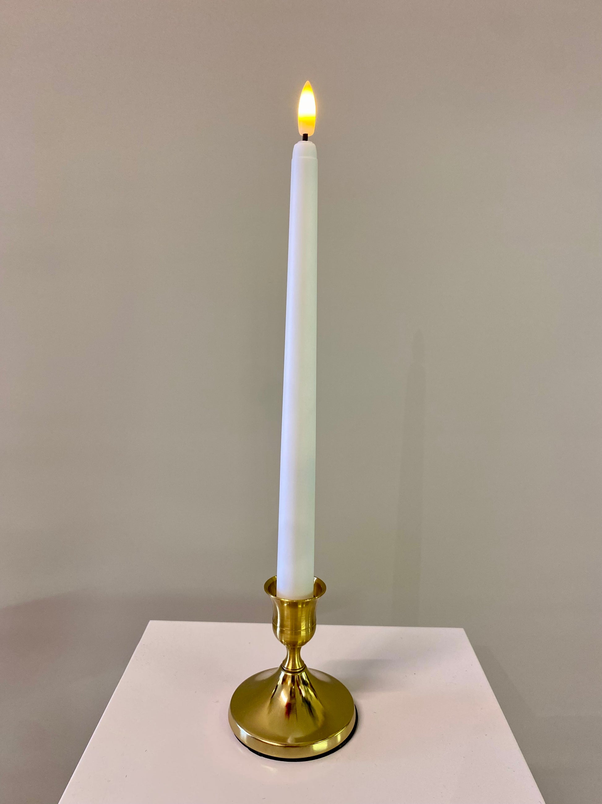 Gold Metal Candle Holder & White Led Taper Candle