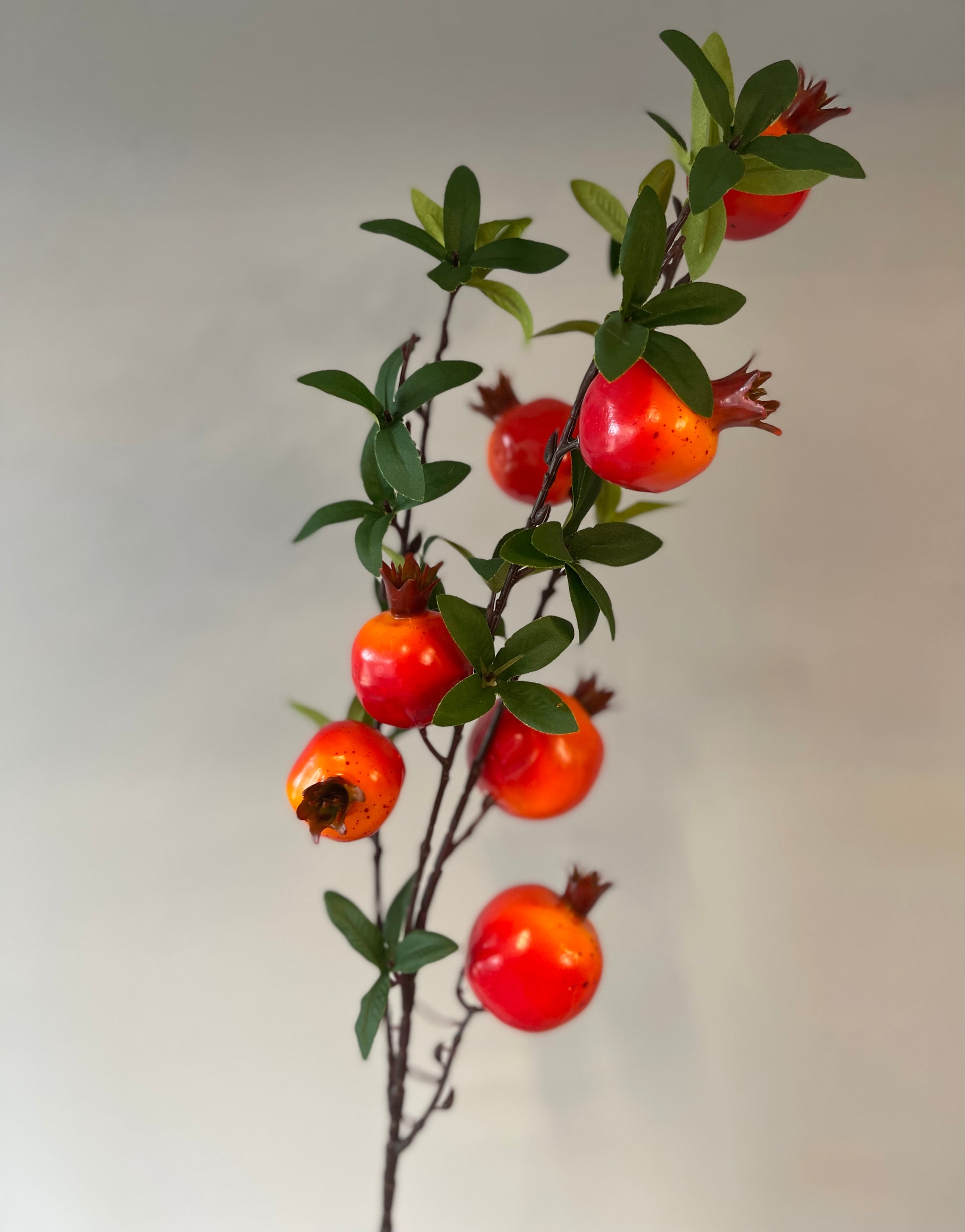 Introducing our captivating Pomegranate Spray Single Stem, a perfect addition to your floral arrangements or home décor. The lifelike design features beautifully detailed pomegranate blossoms and leaves, adding a touch of natural elegance to any setting. The single stem design allows for easy incorporation into bouquets, wreaths, or centrepieces. With its realistic appearance and vibrant colour, our Pomegranate Spray Single Stem brings a touch of nature's beauty to your space. Explore our collection and discover the perfect Pomegranate Spray Single Stem to enhance your unique style and create stunning floral displays that will leave a lasting impression.