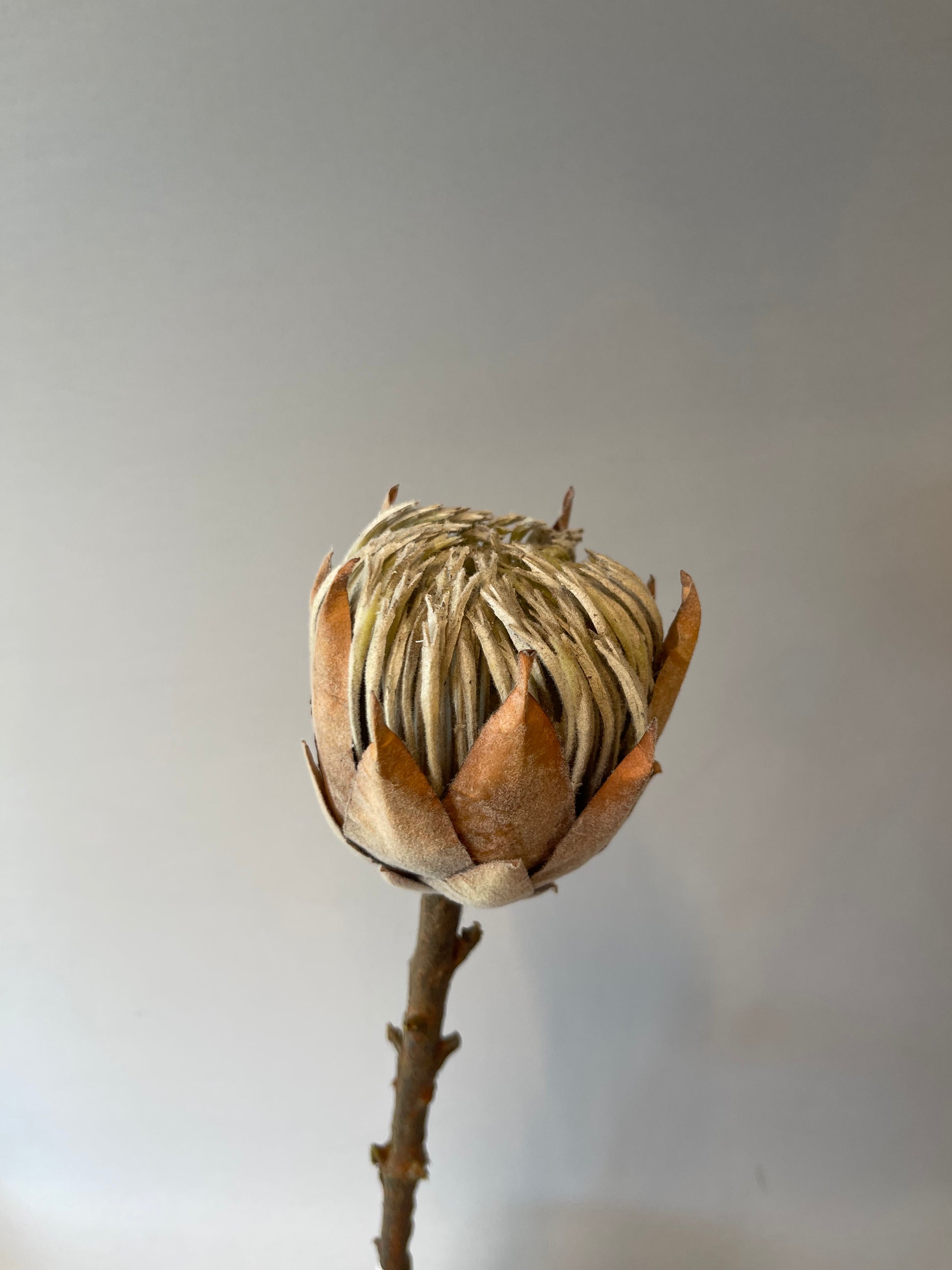 Introducing our captivating King Protea Coffee, a stunning floral accent that brings a touch of exotic beauty to any arrangement. With its lifelike appearance and rich coffee colour, this exquisite King Protea adds a unique and striking element to your floral designs. Crafted with meticulous attention to detail, our King Protea Coffee offers a realistic and long-lasting option for your floral needs. Whether used in bouquets, centrepieces, or home décor, this enchanting flower creates an intriguing and eye-catching focal point. Elevate your floral creations with the captivating King Protea Coffee and let its majestic presence enhance your space.